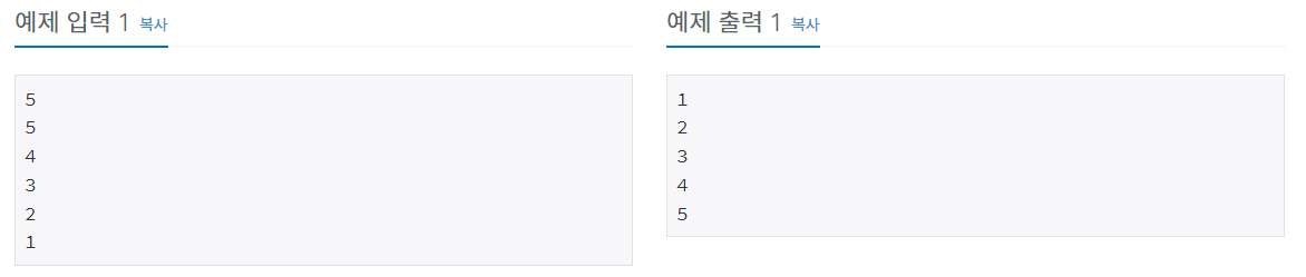 N개의 수가 주어졌을 때, 이를 오름차순으로 정렬하는 프로그램을 작성하시오.