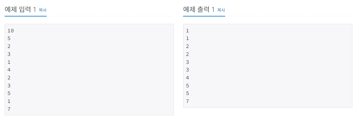 N개의 수가 주어졌을 때, 이를 오름차순으로 정렬하는 프로그램을 작성하시오.