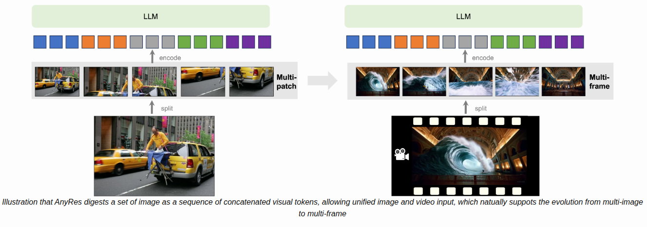 - AnyRes 기법은 고해상도 이미지를 여러 개의 작은 이미지로 나누어, 사전 학습된 ViT가 처리하는 방식